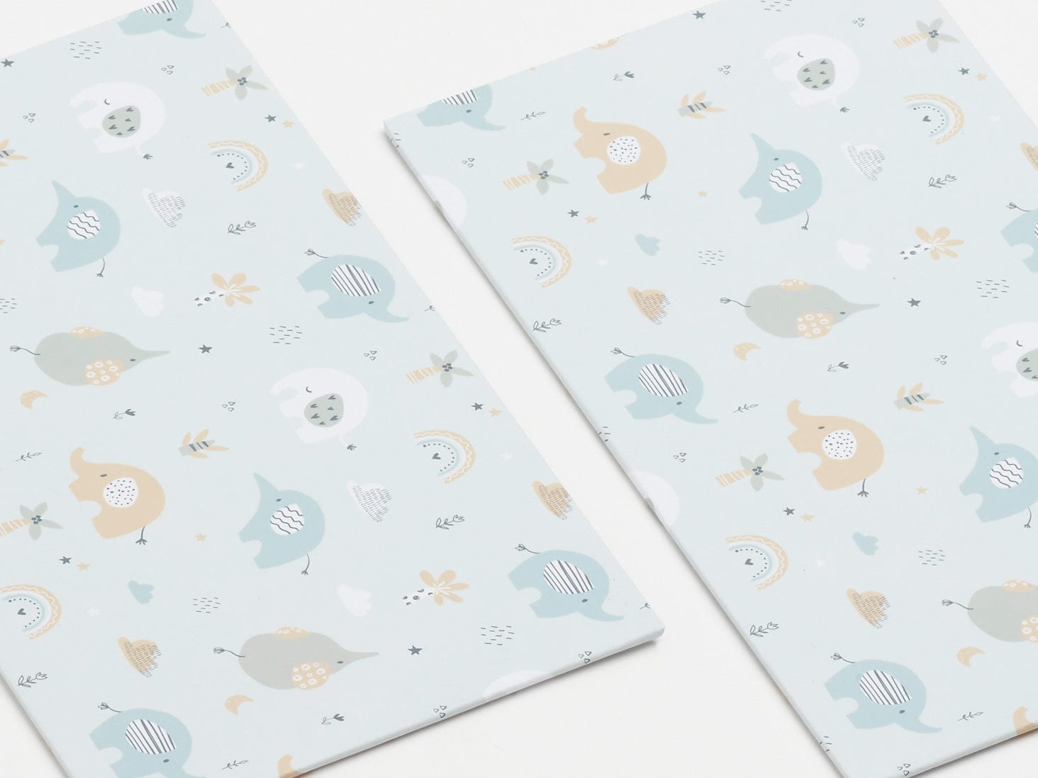 This cute, natural pastel-toned elephant design is perfect for baby keepsake boxes, baby showers, or any baby product gifting. The gentle, calming palette adds sophistication while keeping the look playful and modern.