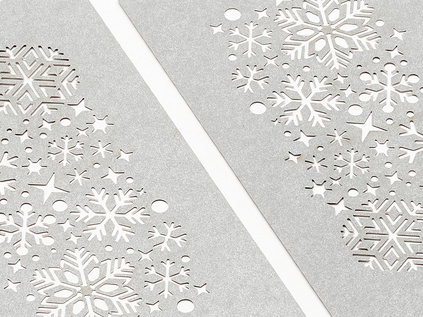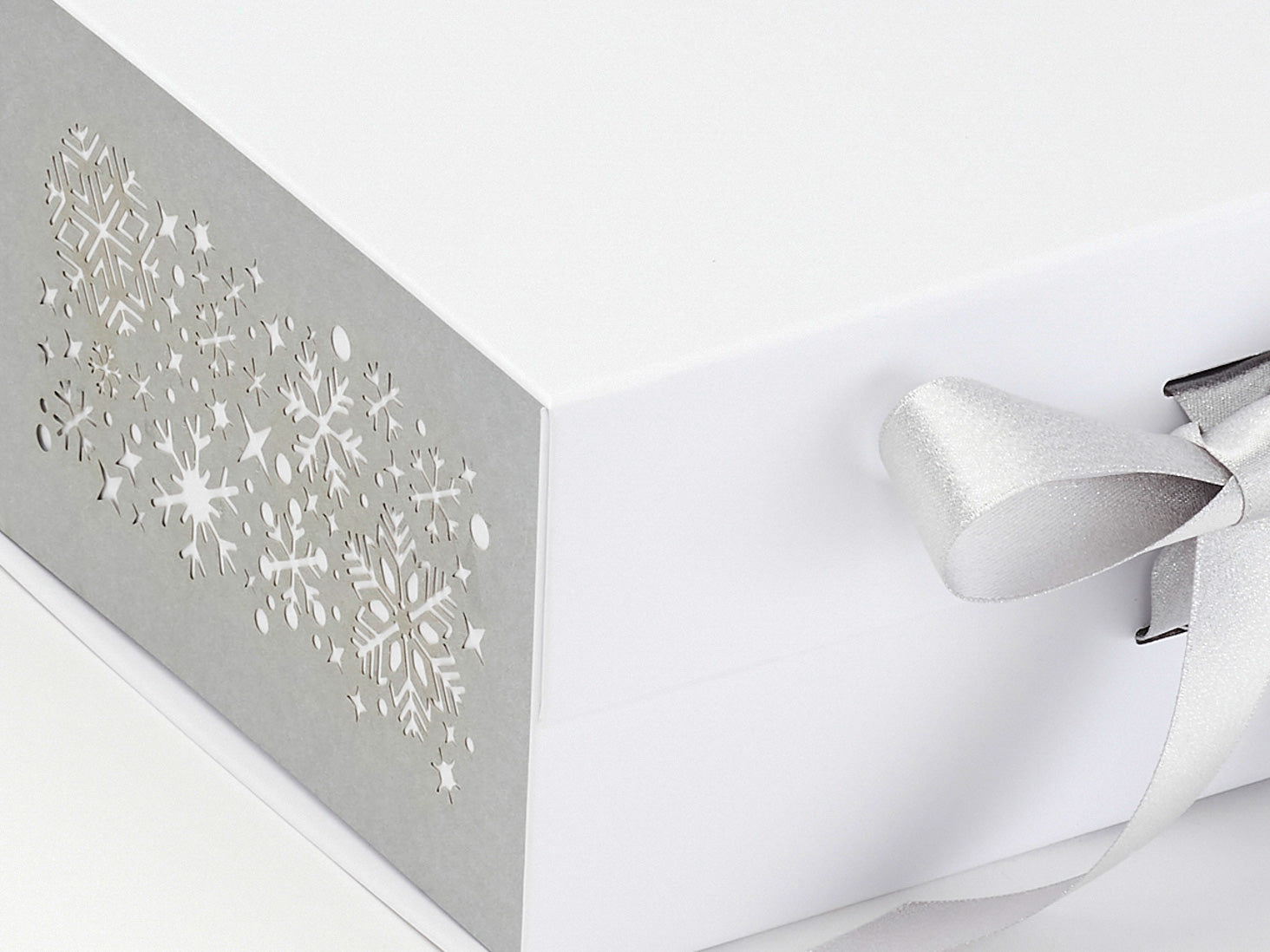 Complement your silver snowflake panels with Ribbons and Decorative Accessories to enhance the luxury holiday aesthetic and make your packaging truly stand out.