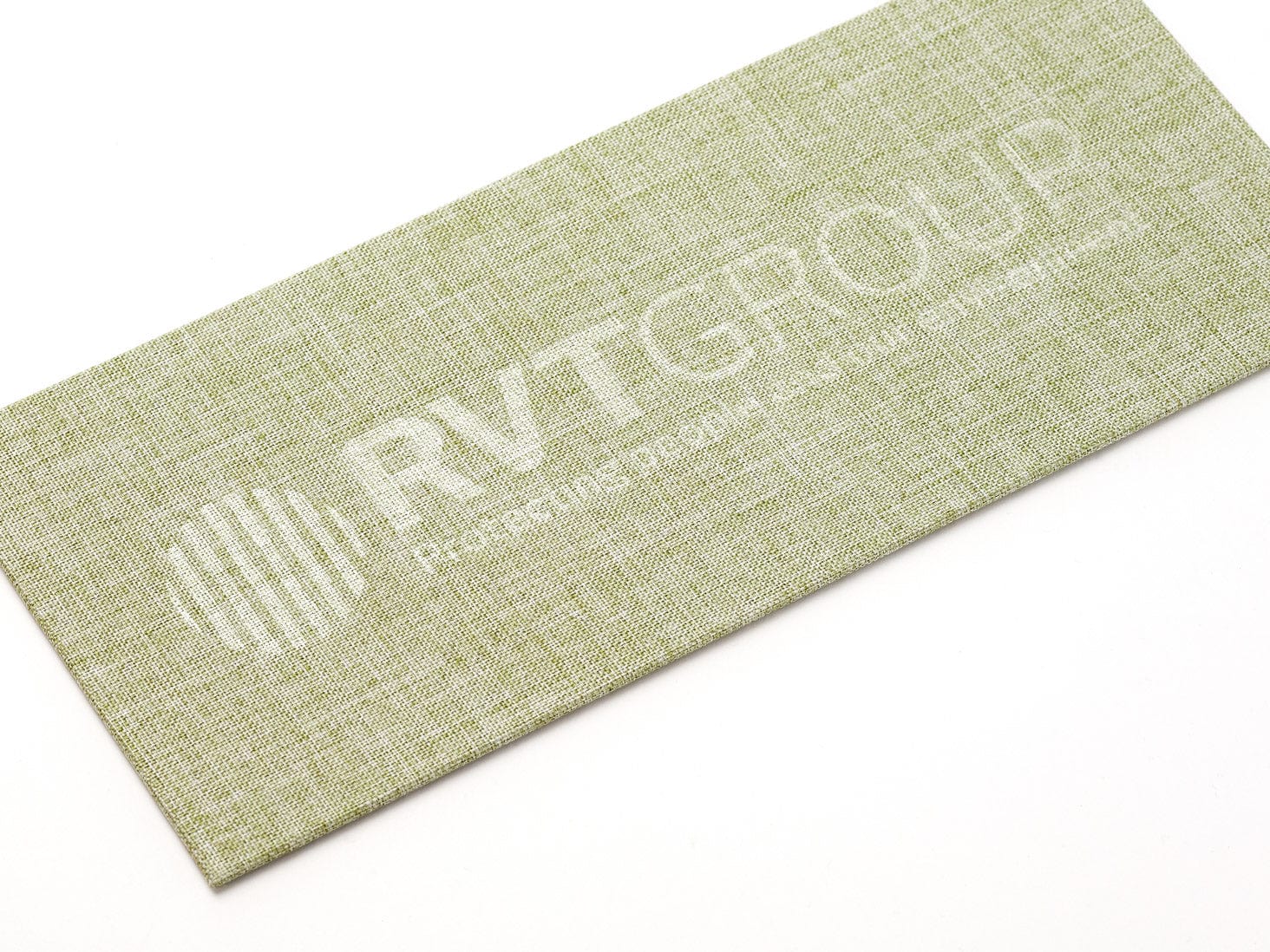 Enhance your Sage Green Linen FAB Sides® with any color from our Ribbon Collection, especially Spring Moss, to add the perfect finishing touch. Adding a rose gold, gold, or silver foil logo completes a sophisticated, high-end look.