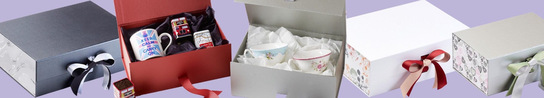 With the popularity of artisan teas and specialty barista coffees, luxury folding gift boxes make the perfect retail gift packaging solution for tea & gourmet coffee hamper gift sets.