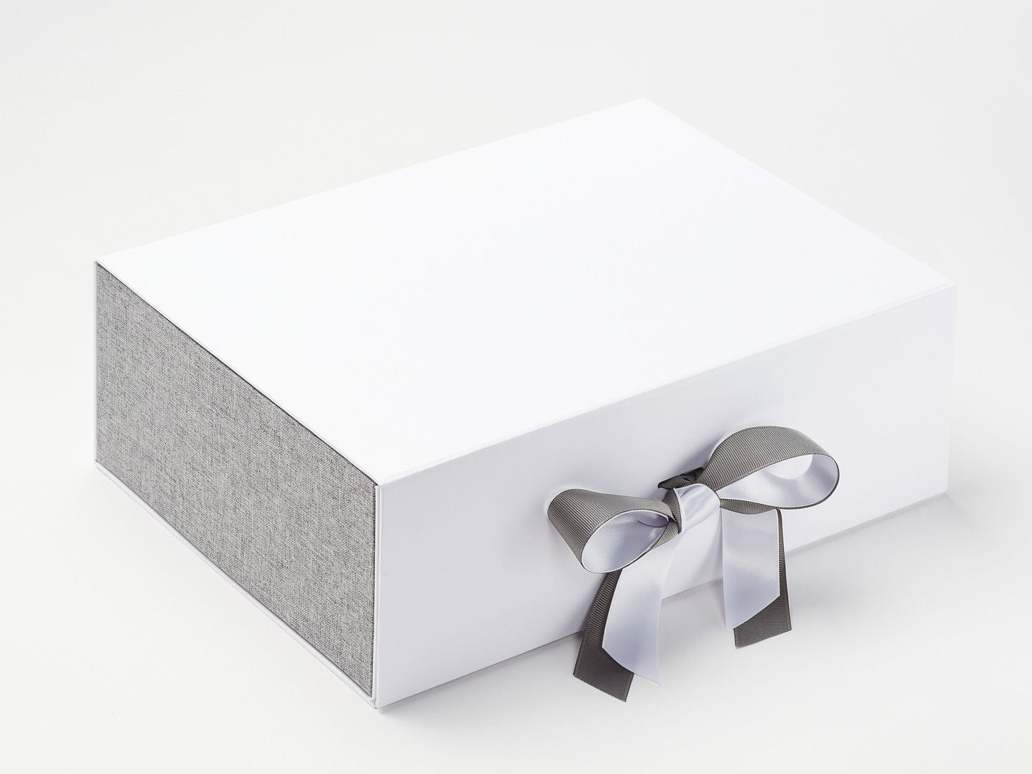 Add a different color ribbon to gift boxes to coordinate with your brand or product palette. Gift boxes also look great doubled up with the supplied ribbon and an additional color for versatile seasonal packaging solutions.