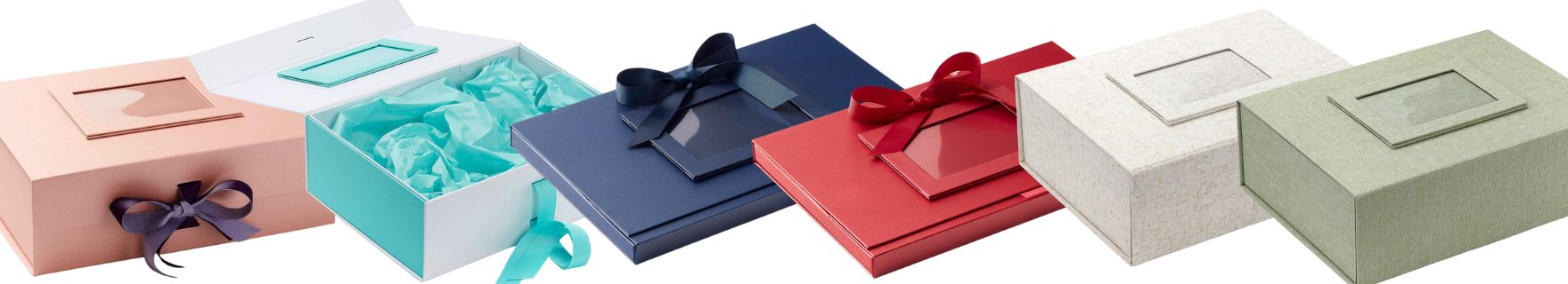 Enabling you to add a photograph, printed product information, a company logo, or promotional message to the outside or inside lid of the gift box.