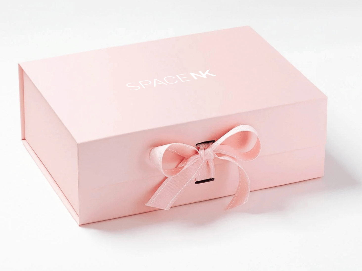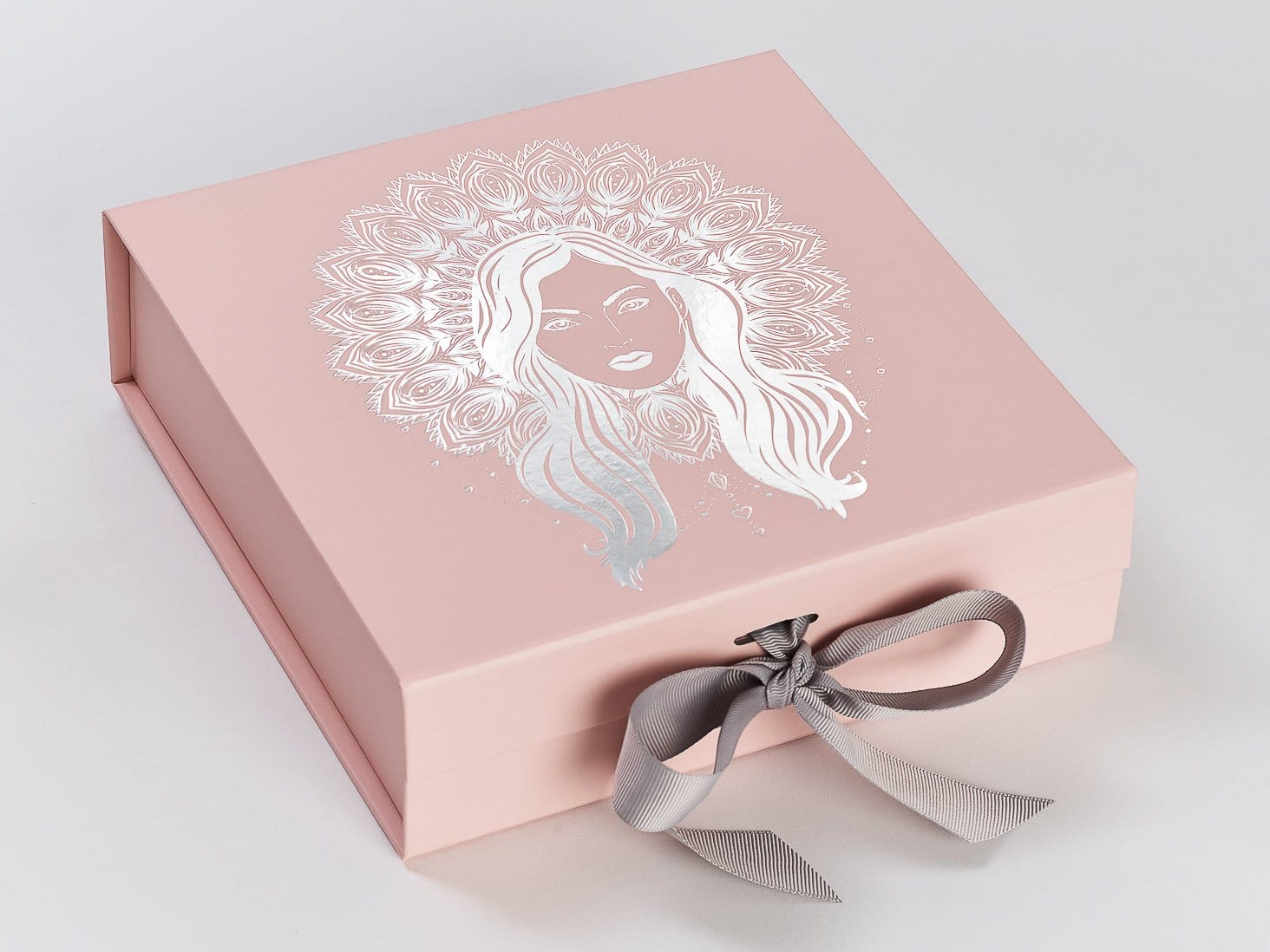 Pale Pink A5 Deep gift boxes with changeable ribbon work perfectly for luxury gift packaging, beauty product hampers, lingerie packaging specialty food hampers or wedding keepsake boxes and baby memory boxes.