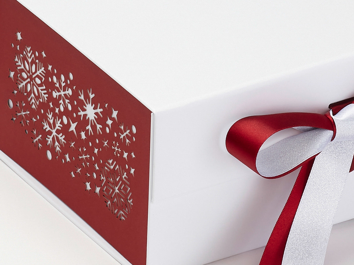 Add festive elegance to your holiday gifts with our Red Snowflakes FAB Sides®. These intricate, laser-cut decorative side panels are designed to fit all our A5 Deep Gift Boxes, delivering a sophisticated seasonal touch.
