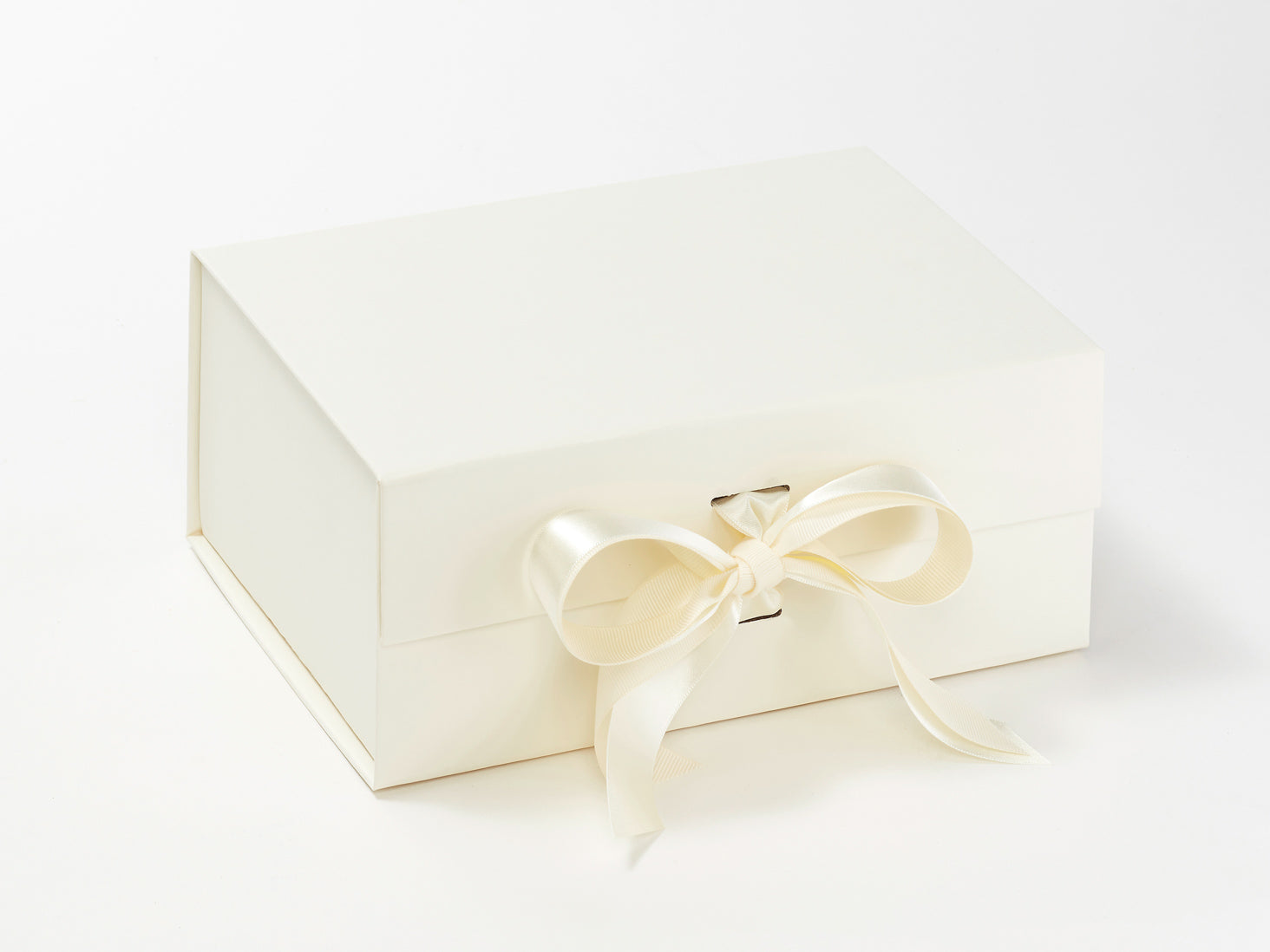 The ideal color for wedding keepsake boxes and works well as a contrast texture to the grosgrain ribbon supplied with all our slot gift boxes.