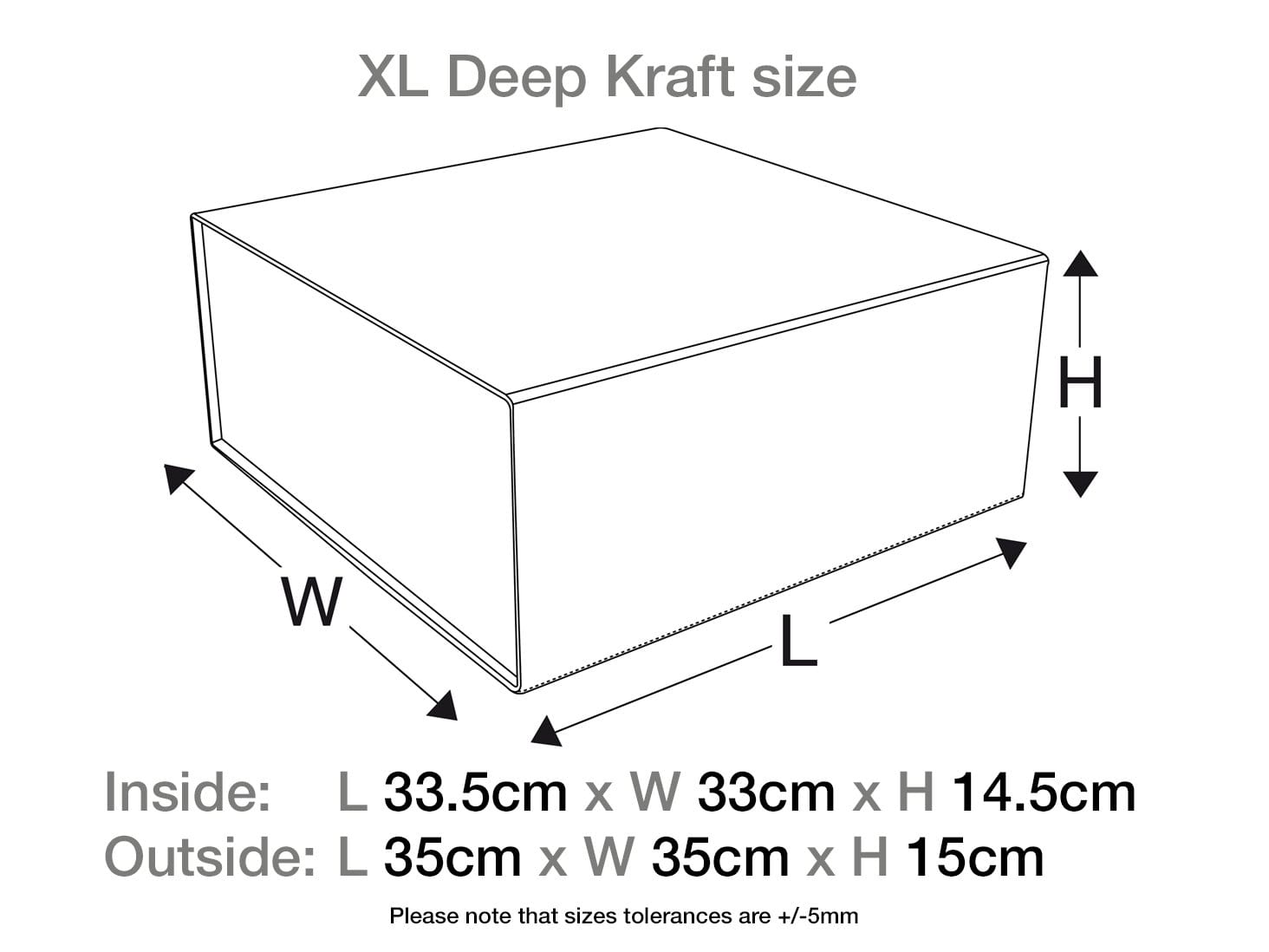 Purchase a single or multiple samples of our Natural Kraft XL Deep No Magnet Gift Box without ribbon. Ideal for eco-conscious brands needing a large hamper box size.